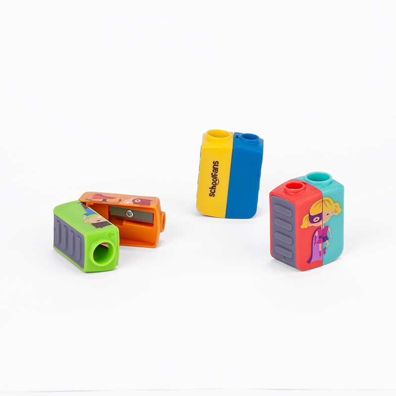 طراحی جذاب قهرمانی این محصول، آن را به یک گزینه محبوب میان کودکان و نوجوانان تبدیل کرده است. علاوه بر ظاهر زیبا، تراش دارای مخزن بزرگ و محکم است که تراشهها را کاملاً جمع میکند و از ایجاد شلوغی روی میز یا داخل کیف جلوگیری میکند. این ویژگی استفاده از تراش را سریعتر، تمیزتر و حرفهایتر میکند.