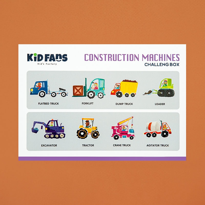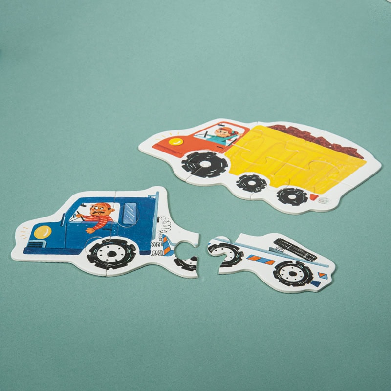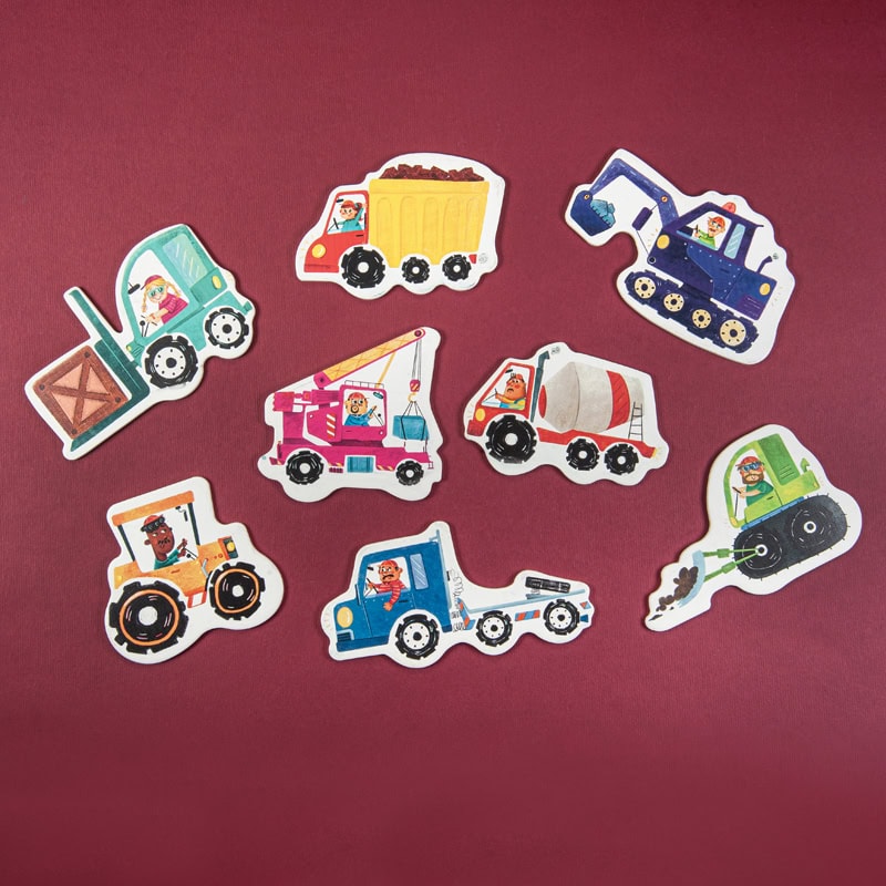 در حین چیدن پازل ماشینهای ساختوساز، کودک با دنیای ماشینآلات صنعتی آشنا میشود؛ از کامیون حمل بار و لودر گرفته تا بیل مکانیکی، تراکتور و جرثقیل. والدین میتوانند همراه او بنشینند و از کاربرد هر ماشین بگویند: