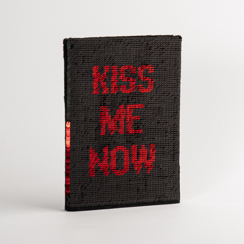 جلد این دفتر برخلاف اکثر دفترهای معمولی، از پارچه ساده یا لمینت کاغذی ساخته نشده؛ سطح آن با بافت پولکی براق پوشانده شده که نور را به زیبایی منعکس میکند و در هر زاویه، رنگ و درخششی تازه پیدا میکند. این پولکها نه آنقدر درشت هستند که آزاردهنده باشند و نه آنقدر ریز که دیده نشوند؛ وسط یک تعادل ظریف ایستادهاند و همین تعادل، دفتر را هم چشمگیر و هم ظریف نگه میدارد.