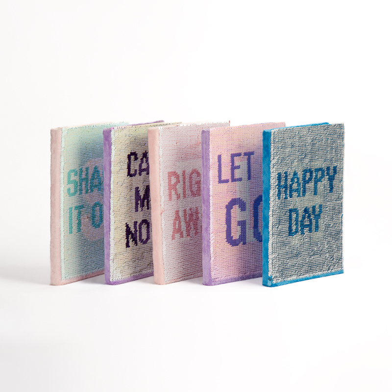 وقتی به تصویر نگاه میکنیم، اولین چیزی که توجه را جلب میکند، ترکیب رنگهاست: پاستلی، آرام، بافتدار و هماهنگ. انگار که هر جلد بخشی از یک داستان باشد؛ داستانی از روزهایی روشن، پیامهایی مثبت و حال و هوایی که میخواهد با شما همراه شود. روی یکی نوشته: “HAPPY DAY”، روی دیگری: “LET GO”، کمی آنطرفتر: “MAKE RIGHT NOW GREAT”. هر جلد یک پیام دارد و هر پیام سعی میکند یک جمله کوچک اما انرژیبخش را در لحظهای مناسب به یاد شما بیاورد.